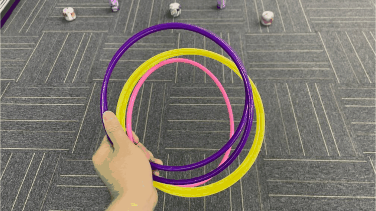 毫不犹豫上前拿了五个圈,单手执圈,瞄准,抬手,扔圈,一气呵成,动作如行云流水,定睛一看: