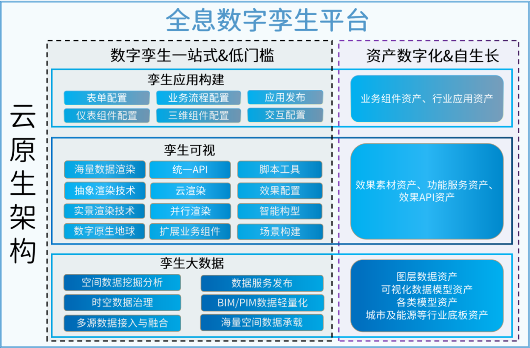 全息数字孪生平台系睿呈时代自主研发的由GIS、BIM、CIM、PIM等各行业信息模型驱动的数字孪生平台产品,平台纵向贯通孪生大数据、孪生可视和孪生应用构建,横向贯通孪生业务的全生命周期,无缝集成业务的规划期和运营期,同时基于睿呈时代十余年在多个行业丰富的项目实践,平台实现了包含数据资产、效果资产、行业应用资产等多类型资产在内的资产数字化以及资产自生长,进而为行业提供超越可视化、超越数据基础、超越配置限制的一站式、低门槛数字孪生体构建与运营能力。