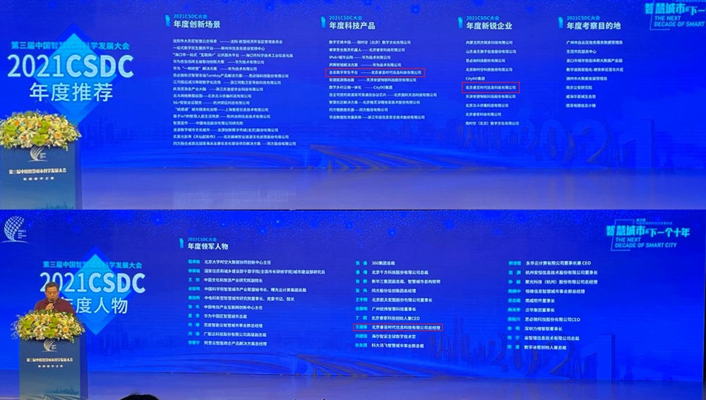 大会同期举办了2021 CSDC大会年度推荐榜单发布仪式,对2021年度智慧城市领域的优秀企业、产品以及代表性人物进行推荐。睿呈时代入选企业、平台两大榜单: